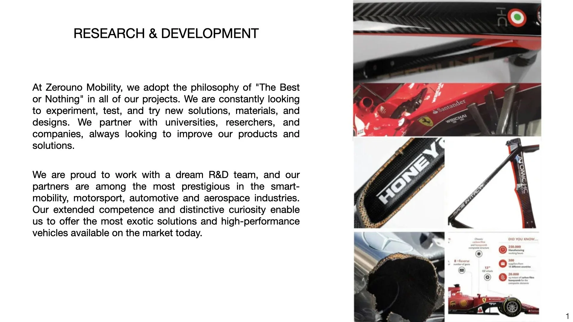 Meeting the most demanding certification criteria, we hold prestigious global certifications including ISO, UCI, and EIT, among others. Regarding our production, approximately 70% of our composites products are Made in the Veneto region of Northeast Italy, where we operate directly.